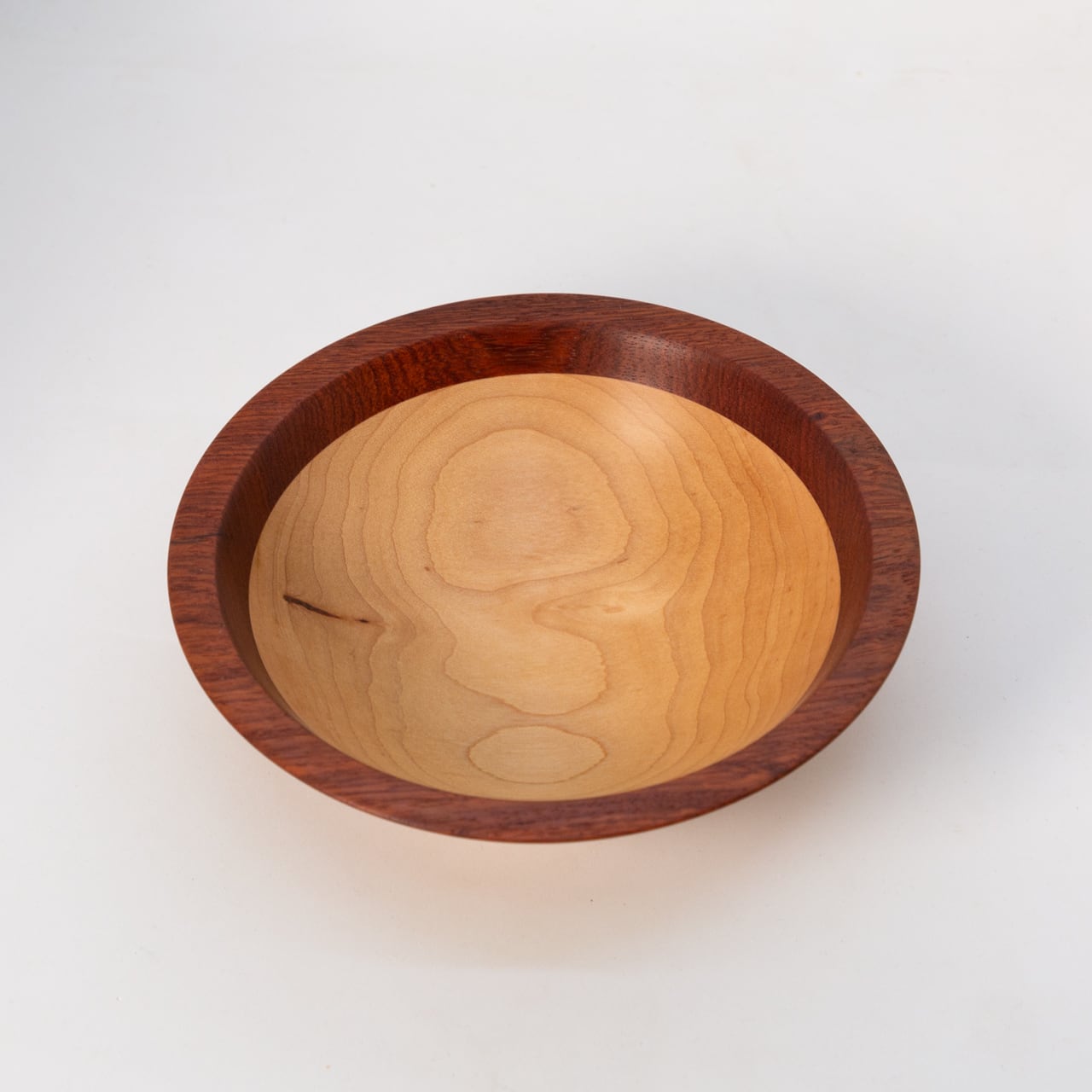 色や種類の異なる自然木を組み合わせて造った寄木造のお皿です。